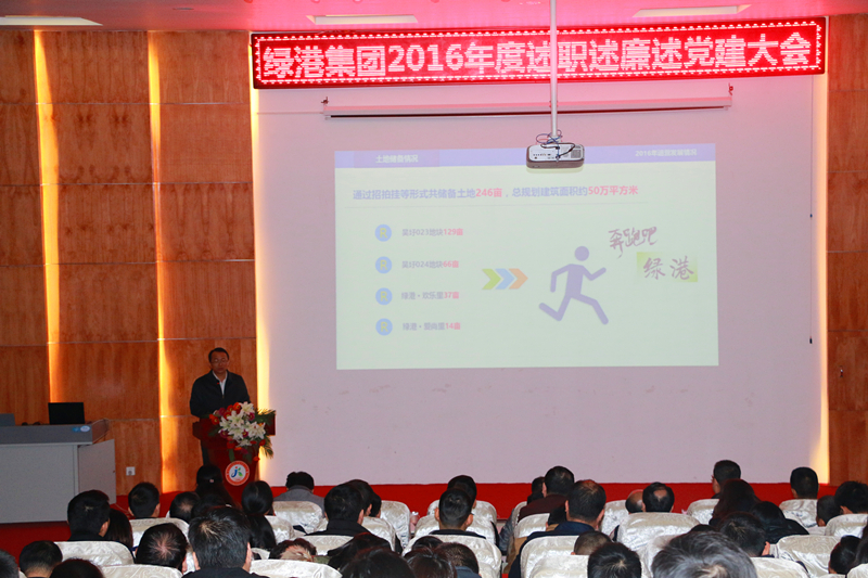 2017年1月14日,綠港集團召開2016年度述職述廉述黨建工作會議,集團全體領導班子、集團總部全體員工及子公司中層干部、職工代表共150余人參加了大會,經(jīng)開區(qū)紀工委派駐國有公司紀檢組組長李云岳,黨群工作局組織科科長向國澤出席會議。