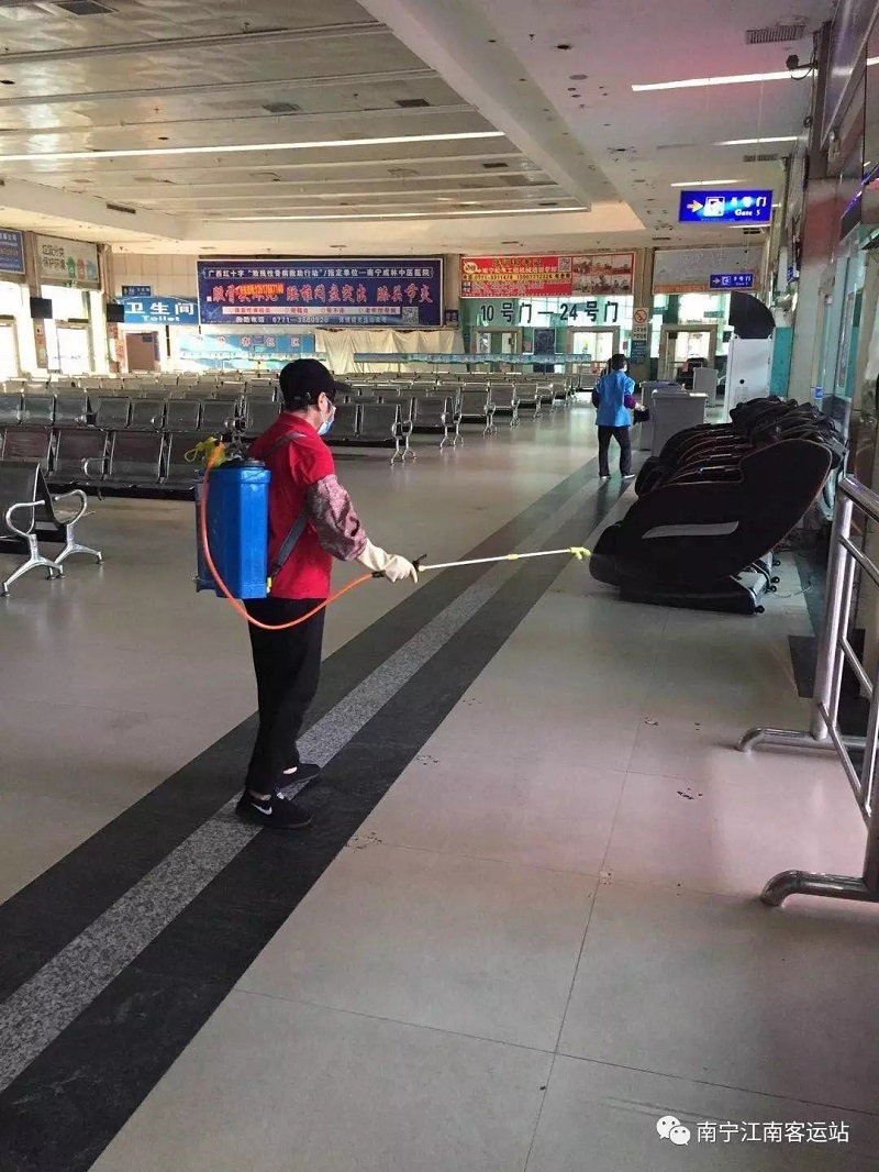 江南客運站對站內(nèi)座椅等相關設施進行消殺。 (江南客運站供圖)